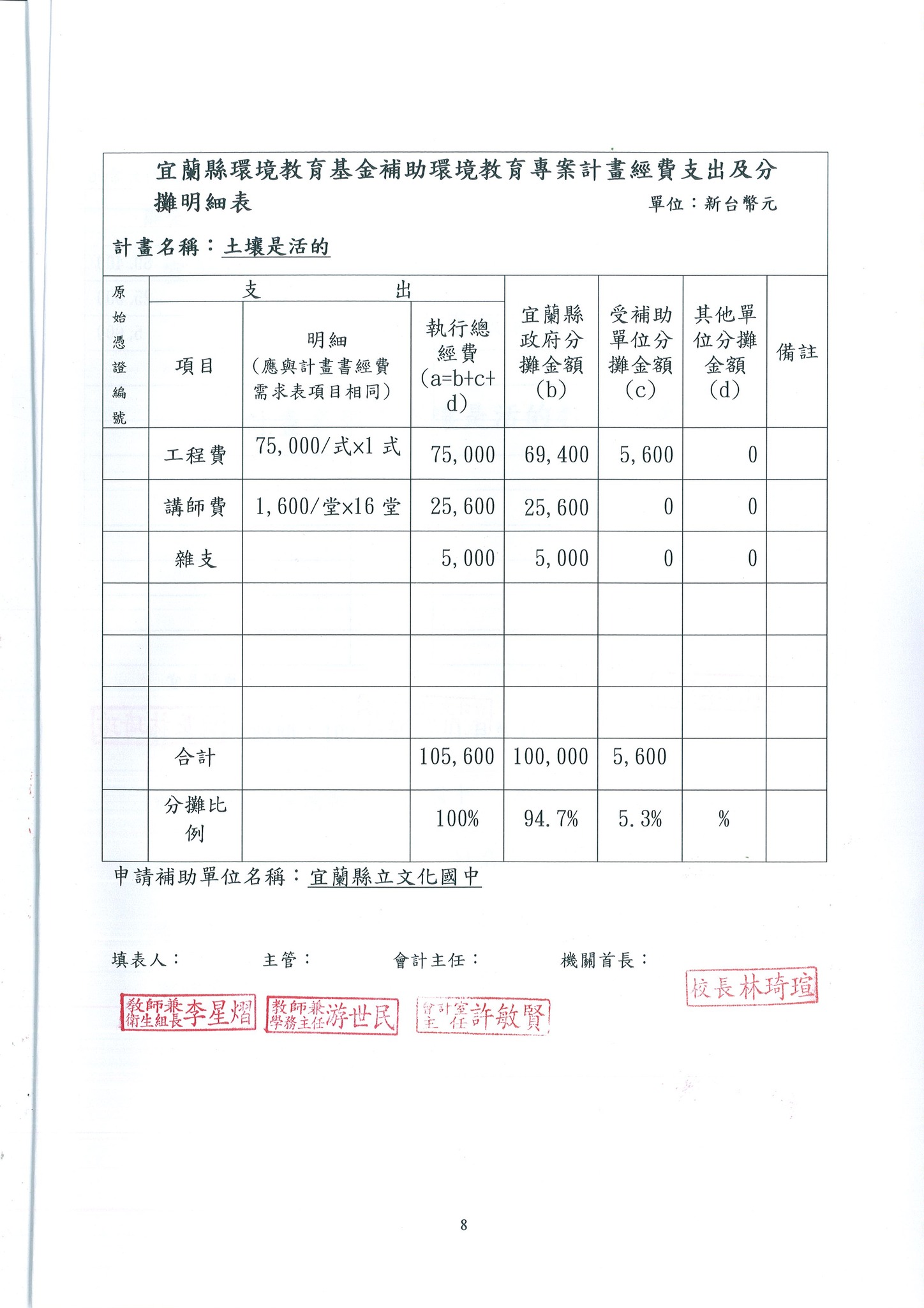 103_一.8.土壤是活的成果報告書、校園環境探索計畫書