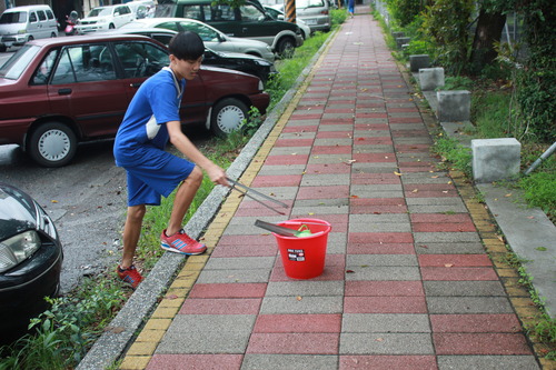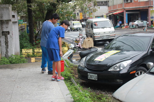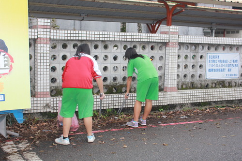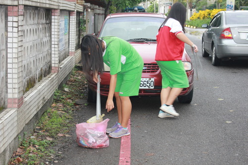 照片說明:本校環保志工利用午休時間整理校園周圍社區環境