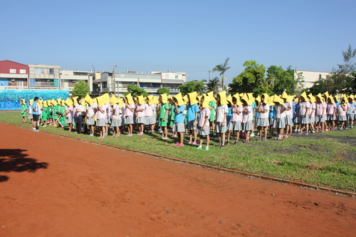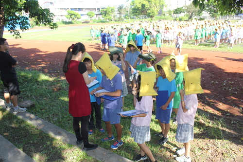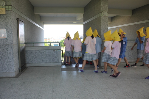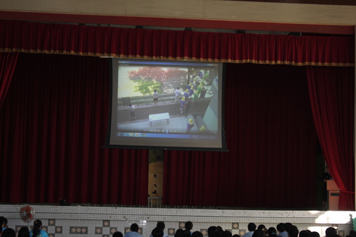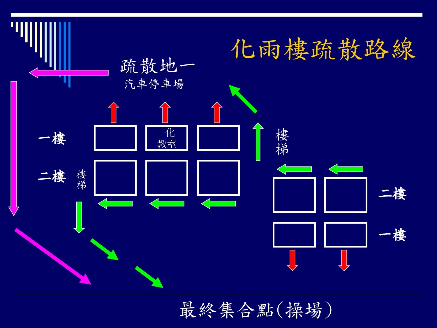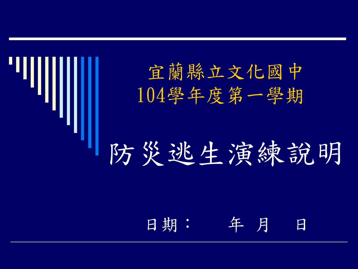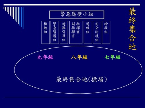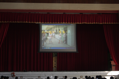 發佈於 17 9 月 201518 3 月 2021 作者: u1102219104_二.2.辦理逃生演練照片說明:逃生宣導簡報於體育館宣導各種逃生注意事項,並觀賞去年逃生演練的影片模擬地震發生時實地掩蔽,戴上防災頭套並躲避於課桌之下俟地震停止後,學生沿事先規劃的逃生路線進行逃生並於操場集合點名確認傷兵名單