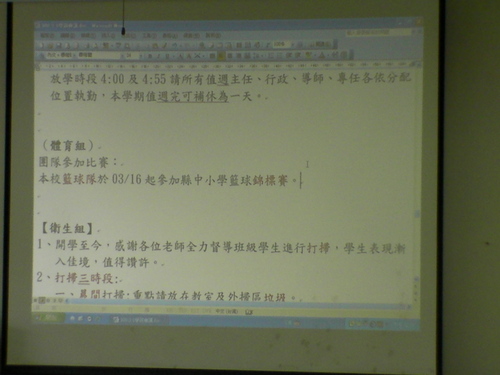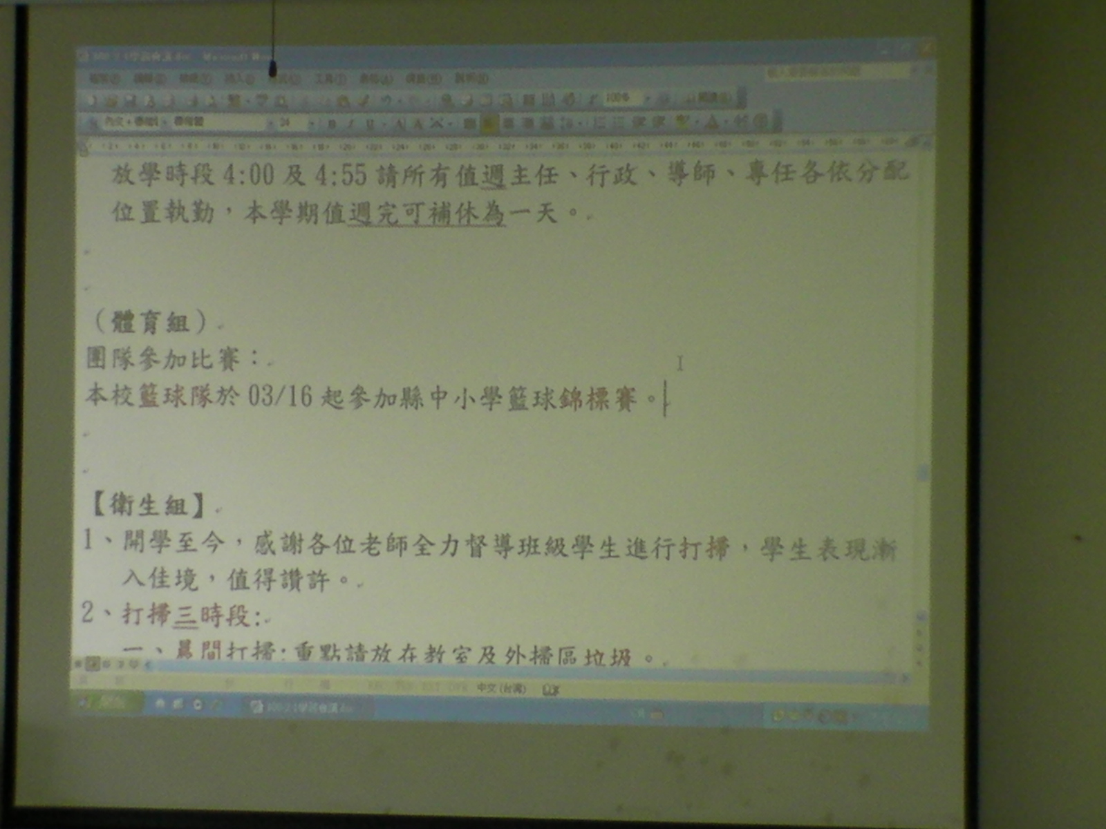 又是新的一個學期,還有許多事情要麻煩大家,也感謝學務處及健康中心的用心,使學生上學期獲益良多,本學期仍持續推動許多議題,再請各處室配合辦理,謝謝。