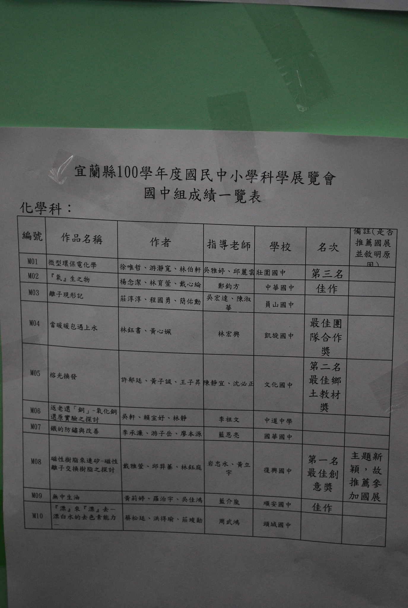 說明:本校自然領域科展–榕光換發,主要是利用榕樹葉進行光合作用達到發電的效果,在宜蘭縣科展獲得肯定,為未來的能源發展開拓一個新的方向。