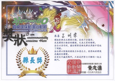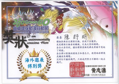 參加宜蘭縣環保動漫行動節徵畫比賽 榮獲縣長獎及海外邀展特別獎 | |