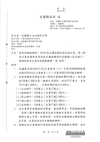 103_四.1.獲教育部補助103年度永續校園局部改造計畫
