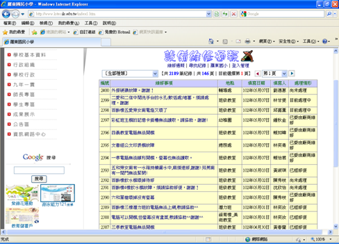 本校設備均經由校園設備維修通報系統登錄及處理