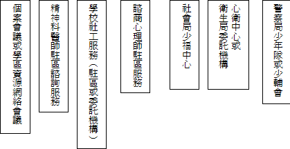 - 若有需要則安排個案認輔或轉介至其他相關資源單位,如社會局、家暴中心、衛生局、少年隊等。