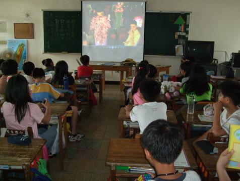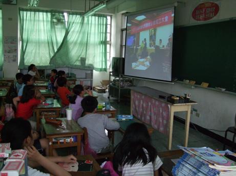 本校有不少新移民家庭子女,為了幫助他們和同學們更融洽相處且避免被標籤化,所以於相關課程活動中運用影片,全班一起欣賞,進而瞭解新移民家庭處境。(圖為融入五年級社會課程實施情形)