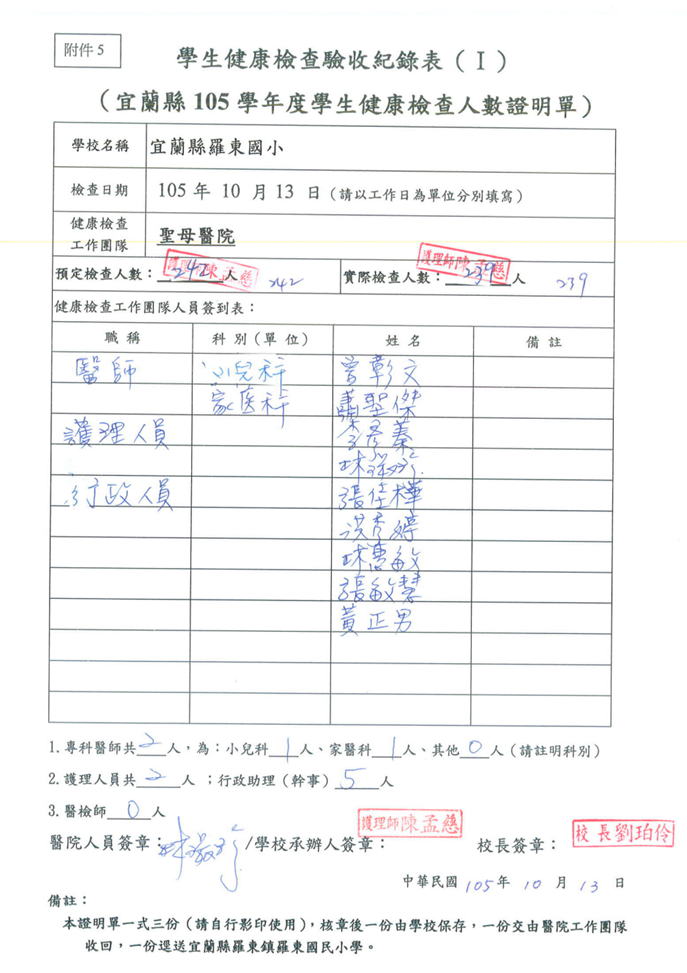 105_辦理「正確用藥」、「視力保健」教師研習活動一、日期:106年3月15日二、時間:1300~1600三、地點:校友館四、講師:簡士凱藥師、 陳孟慈護理師五、參加人員:羅東國小教職員六、活動計畫六、活動記錄簡士凱藥師進行正確用藥宣導陳孟慈護理師進行「視力保健宣導」六、簽到表