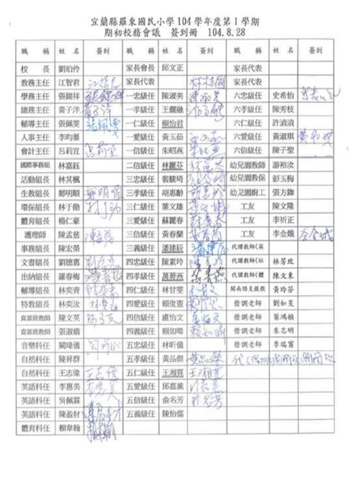 宜蘭縣羅東國民小學104學年度上學期期初校務會議議程記錄