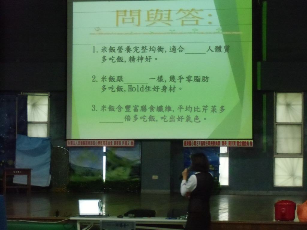 104_食農教育~蘇澳農會推廣有機米食一、日期:104/01/20二、地點:本校樹人館三、對象:本校六年級四、講師:蘇澳農會講師五、成效分析本校邀請蘇澳農會講師蒞校為六年級學生推廣有機米食,內容包含農民曆節氣、米食營養、種稻過程、食品添加物及自製麻糬體驗等,課程非常豐富,學生參與度很高,跟老師互動良好,是一門很完整的課程,讓學生受益良多。六、成果照 邀請蘇澳鎮農會專員講座「認識我們吃的米」 米食的營養價值 農民曆節氣與農作的關係 自己做的麻糬比較健康各式食品添加物,如色素、香精 香精聞一聞有獎徵答加深學生印象