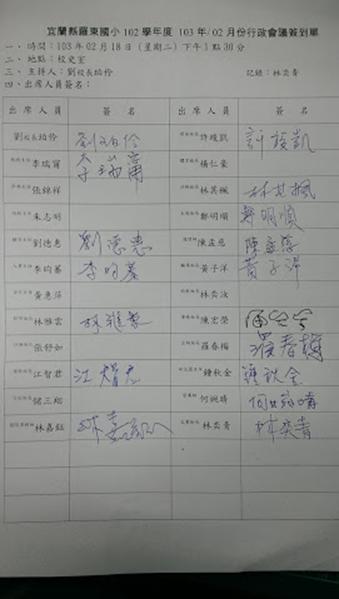 宜蘭縣羅東國民小學103年02月份行政會議記錄 103.02.18/13:30