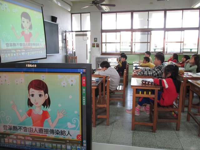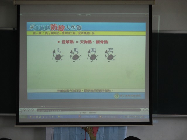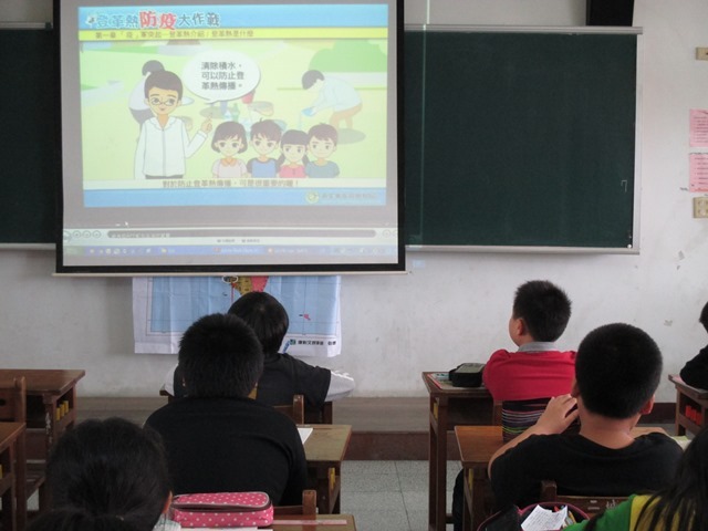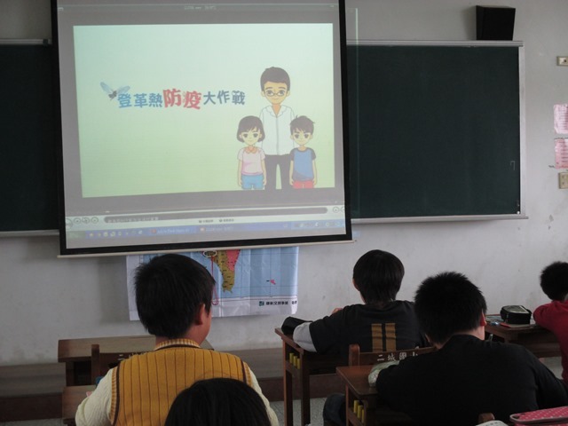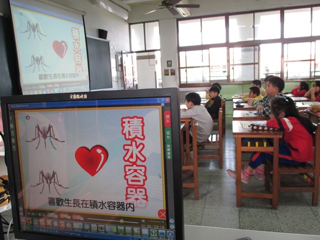 1040303登革熱宣導Post author:吳妮錚Post published:2015 年 3 月 3 日Post category:其他配合措施 / 教學與宣導活動 / 教材分享 / 活動照片一、時間:1040303(三)二、地點:專科教室三、宣導對象:四年級四、活動照片: 相關內容105年寒假期間校園登革熱防治工作2016 年 2 月 15 日1030930校園安全檢查<衛生組><保健室>2014 年 10 月 1 日1040626食農教育~有機菜宣導2015 年 6 月 25 日