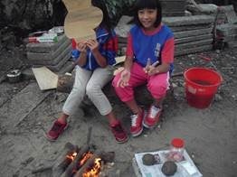 學生練習共同生火煮飯 | 小優這一組很快就好火了 |