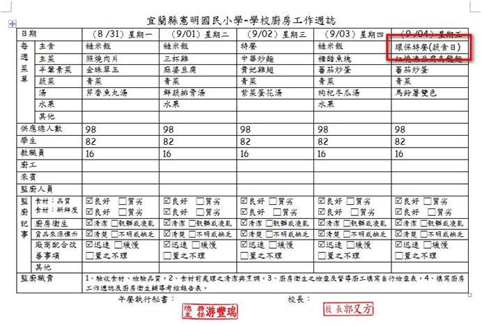 104年度環教考評─5-2 推廣每週一日蔬食運動Post author:hong1220Post published:2015 年 11 月 11 日Post category:學校環教特色時間:每周五參加對象:全校師生活動地點:本校各班教室活動內容:推廣每週一日蔬食運動(星期五)。 ———————————————————————相關內容4-7-2家長接送學生車輛共乘2020 年 11 月 19 日105年度環教考評-2-4辦理環境教育藝文競賽2016 年 11 月 14 日規劃設置水循環再利用設施、綠建築等2013 年 11 月 12 日
