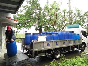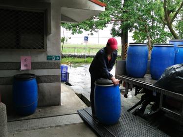 - 內容簡述:廠商廚餘回收人員協助載運廚餘桶,送至養豬場回收。