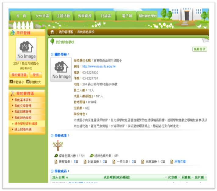 內城國小自九十四年加入綠色學校的伙伴,迄今有17片深綠色葉子。