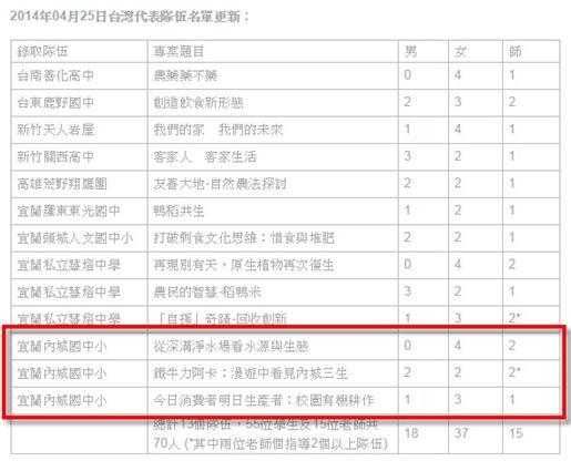 103_2-7 本校代表隊獲選國際環境守護組織(CEI)台灣代表2014 年 11 月 13 日林淑真本校代表隊獲選國際環境守護組織(CEI)台灣代表 在社區的協助下,讓參選的同學們塔乘內城社區特有的交通工 具-「鐵牛力阿卡」,走訪深溝淨水廠;透過實際體驗,提出簡報 主題與內容。 活動成果 資料來源:http://www.cei2014.org/node/22
