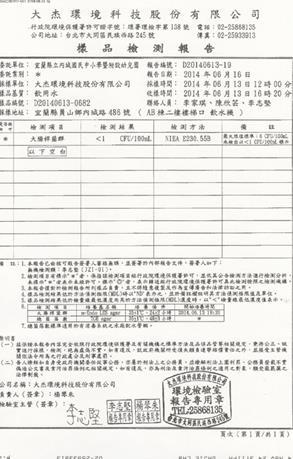 飲用水檢測紀錄(依規定每3個月檢測1/8台)