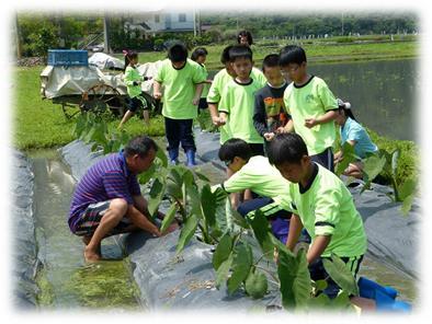 主題說明:本校特色課程-有機小農夫-「檳榔心芋」,於校園附近農田種植檳榔心芋,並設計了一連串課程,包括:介紹水芋生長的環境及它的生長期、了解如何選擇適合的水芋種苗、種植前的預備工作-整地、種苗殺菌…親自體驗種植水芋並為水芋掛上名牌、種植檳榔心芋並繪製他的生長小書、收集芋頭製品的資料、美食分享-檳榔心芋。
