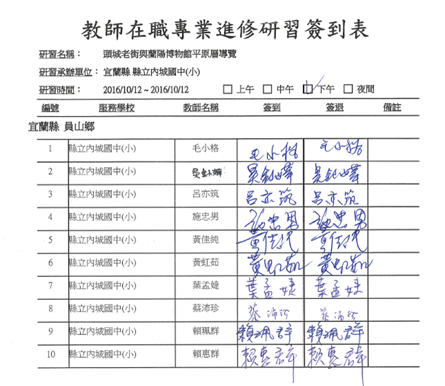 「105年度頭城老街與蘭陽博物館平原層導覽」研習意見回饋表