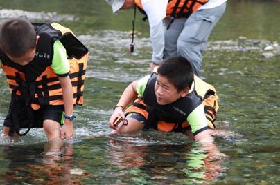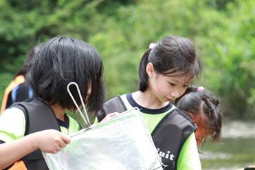 水生生物百百種,武荖坑裡有幾種?透過園區溪流水生動植物的形態構造與生存區位的簡介,讓孩子對於水生生物有更進一步的認識。另經由水生生物調查技巧與器材使用方式的教學過程和實際體驗,讓孩子在活動過程中培養環境行動技能。