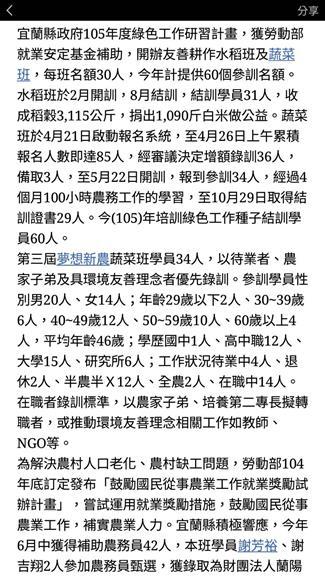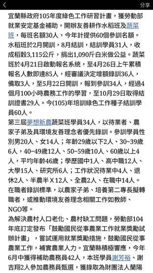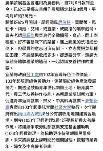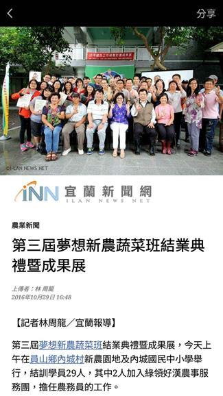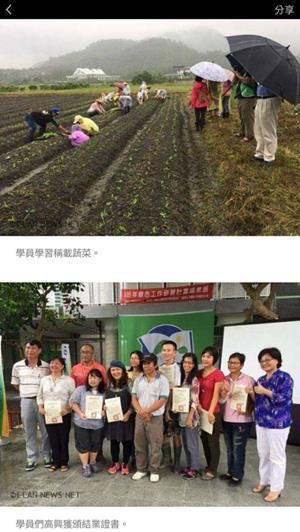 105_2-5 配合宜蘭社區大學辦理105年度綠色工作研習計畫活動2016 年 11 月 17 日江文信辦理事項:結合民間團體、地方產業和社區資源辦理環境教育活動,並有卓著之事蹟 事項說明:本校配合宜蘭大區大學辦理「105年綠色工作研習計畫成果展」,並於員山鄉內城村闢建新農園地供學員使用,詳如成果說明。 辦理成果: