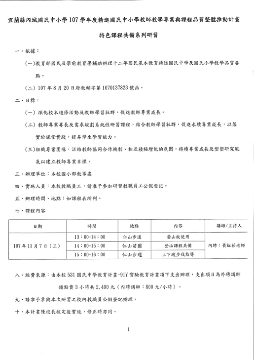 研習主題:宜蘭縣107年度【教學專業與課程品質整體推動計畫】實施計畫