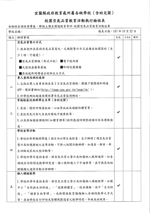 說明 | 配合學校校園宣導,一併說明空氣品質教育宣導活動。 | |