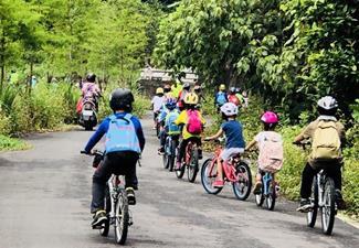 騎乘單車背起行囊出發 | 從後山遠眺我們的學校 |