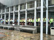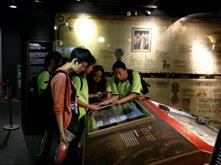 全體學生於黃金館前合影 | 學生於黃金館內完成小組作業單 |