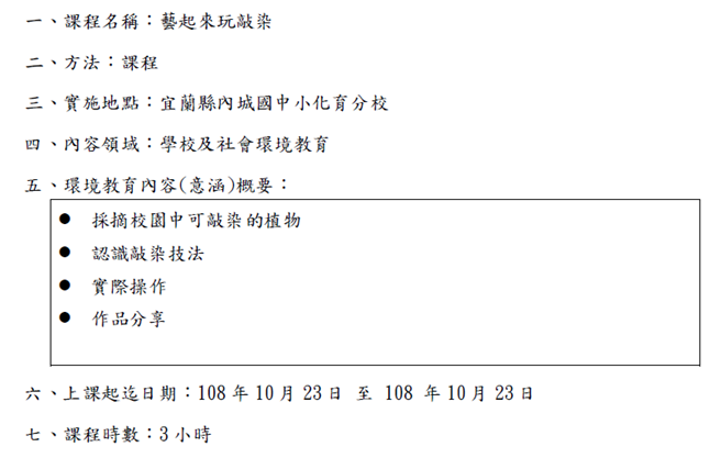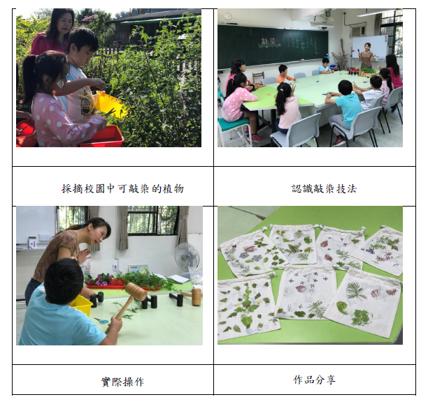 108_2-1 化育系列-課程融入環境教育-藝起來玩敲染2019 年 11 月 20 日江文信辦理事項:研討環境教育課程,研發環境教育教材、教學模組,推動環境議題行動研究,並將環境教育融入各科教學事項說明:化育分校美勞課程教學融入環境教育教學元素色彩-藝起來玩敲染,詳如成果說明。辦理成果: