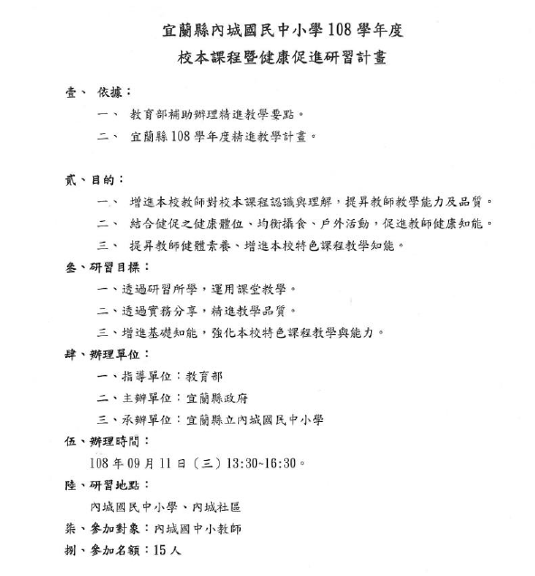 - 研習課程名稱:108學年度校本課程暨健康促進研習計畫