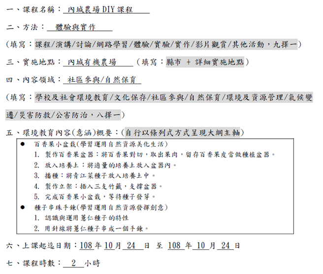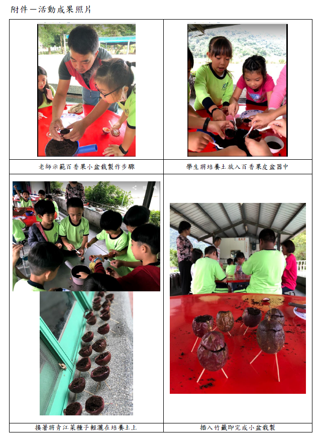 事項說明:本校與內城農場合作,由農場主人親自帶領學生進行手作課程,本次課程主題為「百香果與串珠的鍊結」,藉由社區小公民特色課程,讓孩子與大自然多了連結,這次製作百香果盆栽及種子串珠手鍊,讓孩子更加運用自然資源美化生活及運用自然資源發揮創意,詳如成果說明。