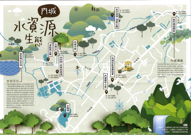 (二)計畫實施特色效益及影響 特色效益: A、開辦內城水資源生態課程,不但可以讓學上及居民對於在地特有水資源生態資源的認識,也可以加強在地生態保育的觀念。 B、將內城水資源生態調查的資料編成的教材,以作為學校設計常態的實驗課程之用。 C、透過課程安排,教導在地學生正確的生態產業觀念,並避免發展過度觀光導致社區文化歷史的流失及生態環境的破壞 D、透過水資源生態調查課程的計設,促進社區對在地水資產生態生情感,推展水資源生態保育。 E、製作水資源生態地圖及筆記本,記錄現有原始的水資源生態環境,也能讓居民了解內城的特色資源。 | ||||||||||||||||||