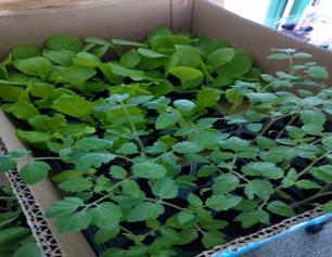 學生們在認識及觀察要種植的菜苗。  | 老師將菜苗逐一的發給學生們做種植。  |