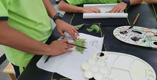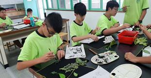 在日常生活中觀察、感受並尋找創作發想及延伸方式,運用於葉材拓印表現。