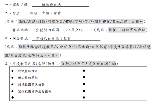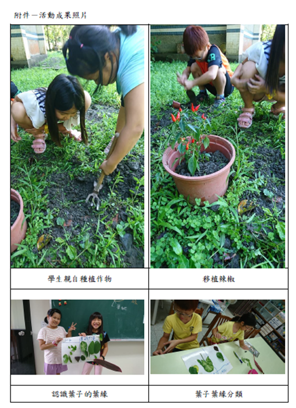 108_4-8 化育系列-校內多元系列課程融入環境教育元素-植物與大地2019 年 11 月 21 日江文信宜蘭縣立內城國民中小學108年度推動學校環境教育特色及創新成果報告一、項目:校內多元系列課程融入環境教育元素二、要點:學校其他環境教育特色及創新作為項目三、內容說明:化育分校美勞課程教學融入環境教育教學元素色彩-植物與大地,詳如成果說明。辦理成果: