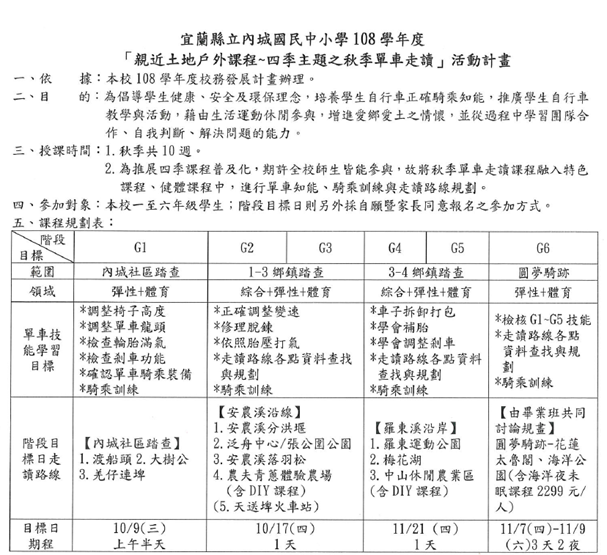 108_4-9 四季主題-親近土地戶外課程-108學年度G1秋季單車走讀