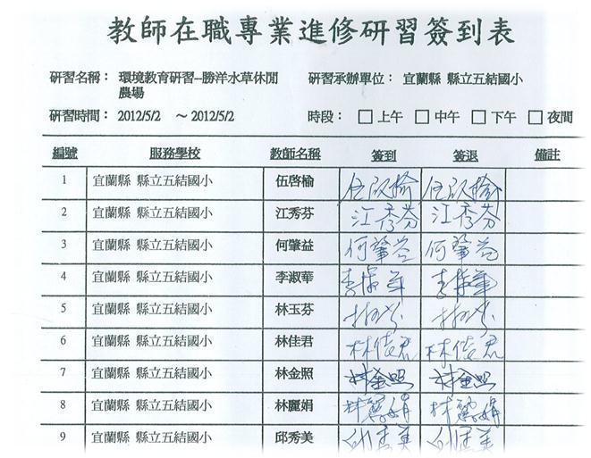 - 獲縣府補助,教職員工參加環境教育體驗活動。