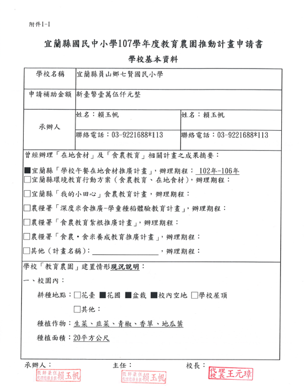 宜蘭縣七賢國民小學107學年度教育農園推動成果