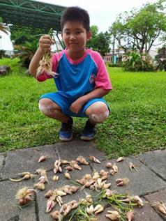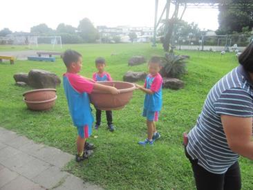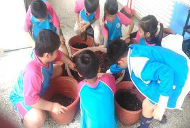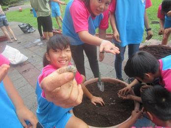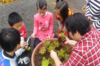 說明:二年級學生努力營造一個專屬的盆栽有機蔬菜園地。