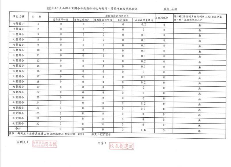 108年度:項目四.2訂定食農計畫及設置教學農場推展食農教育,每週五固定一日蔬食,廚餘回收情形良好
