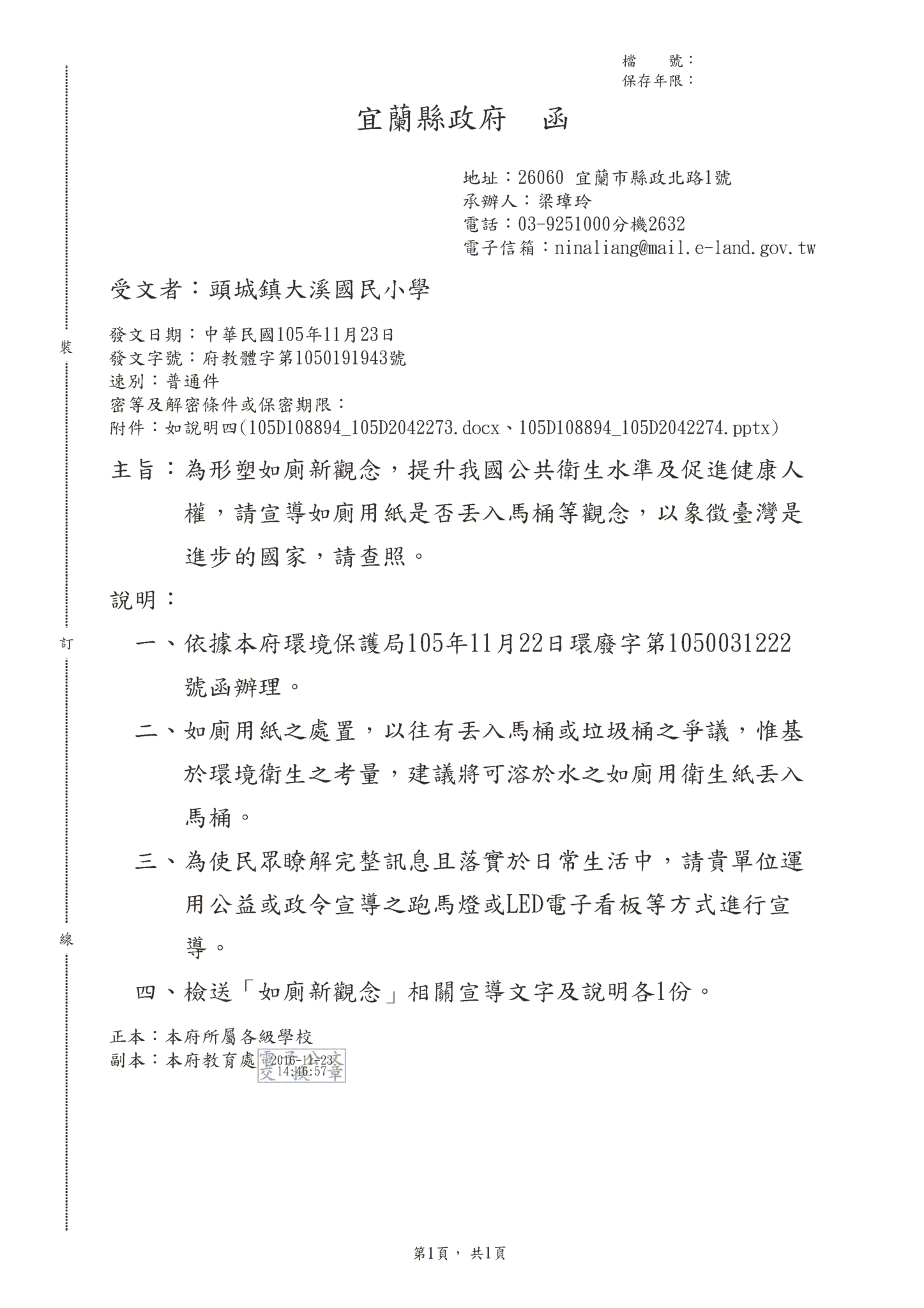 宣導如廁用紙是否丟入馬桶等觀念Post author:陳靜惠Post published:2016 年 12 月 5 日Post category:公告相關內容104_【宜蘭綠卡】累積綠點兌換獎品活動2015 年 5 月 28 日已通過認證之「環境教育設施場所」名單2017 年 1 月 24 日104_台灣戲劇館環境教育課程活動2015 年 1 月 14 日