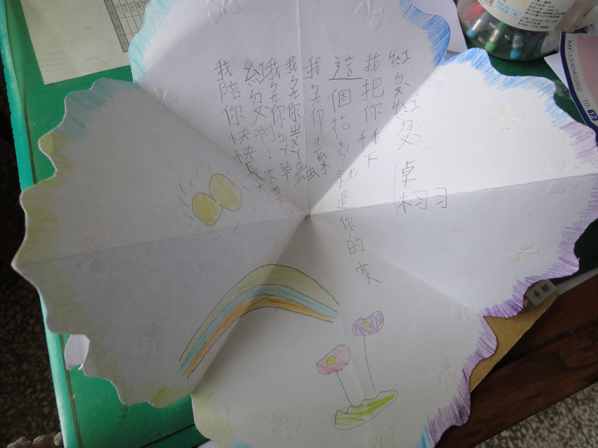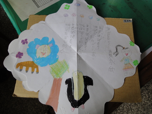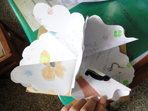 教學與宣導活動 教材 活動照片 2011 年 9 月 23 日2021 年 3 月 18 日 作者: 李幸玟環保藝文創作─花朵小書主題:環保藝文創作–花朵小書地點:一年級教室參與對象:一年級說明:廢棄的紙版可以做什麼呢?老師帶領小朋友利用紙箱裁成紙板,然後利用圖畫紙做成花瓣,花瓣裡是小朋友的文章創作喔!兼具環保與美觀的價值,讓我們一起來看看小朋友的成果吧!