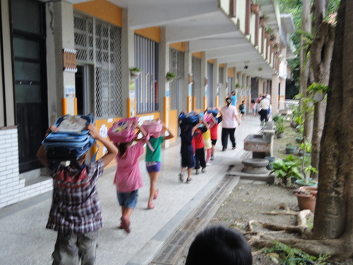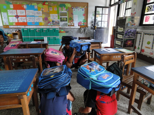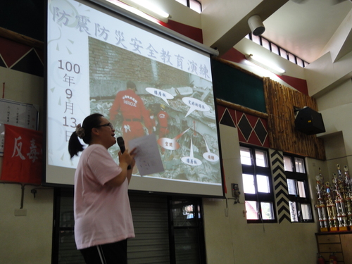 說明:由於近來全球氣候變遷,各地均發生嚴重的天災人禍,防災教育也越顯重要,學校利用學期初進行防災教育宣導,並進行實地演練,同時期待大家能更落實環保教育,讓災變的影響降到最低。