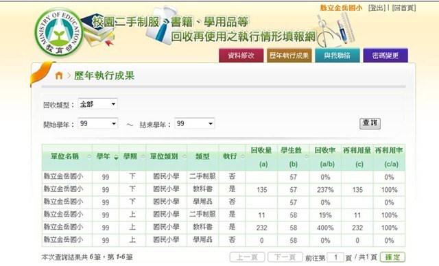 主題:金岳國小99年度二手制服、教科書、學用品回收再利用情形