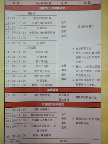 學校環教特色 教學與宣導活動 2012 年 11 月 26 日2021 年 3 月 18 日 作者: 李幸玟101金岳社區傳統文化與節慶活動暨耆老圓夢募款晚會主題:金岳社區傳統文化與節慶活動暨耆老圓夢募款晚會時間:101.11.23地點:金岳社區參與人員:金岳社區居民、金岳國小師生說明:金岳社區發展協會舉辦傳統文化與節慶活動暨耆老圓夢募款晚會,社區居民與學生熱情參與。活動中耆老吟唱古老歌謠,敲響莎韻之鐘,並舉辦放陷阱、男子角力、背地瓜等傳統競賽,傳承部落傳統的原住民文化。金岳國小舞蹈隊也表演傳統舞蹈,活動熱鬧非凡。
