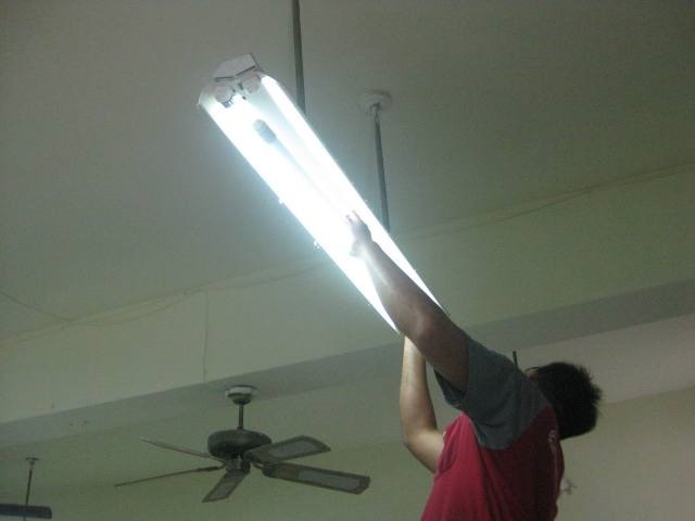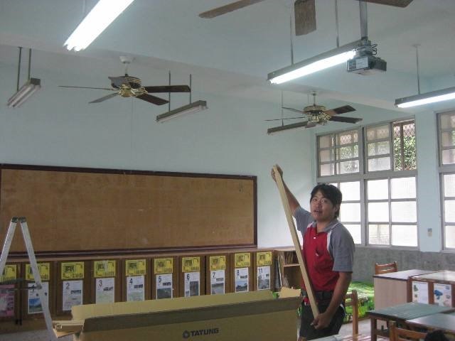 校園環保實務 2013 年 10 月 16 日2021 年 3 月 18 日 作者: 李幸玟102班級教室全面改裝節能燈管主題:班級教室全面改裝節能燈管時間:102年9月地點:金岳國小班級教室 說明:學校獲得縣府補助,將班級內老舊的燈管淘汰,裝上新的節能燈管,讓學習場所更明亮也更環保。
