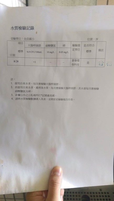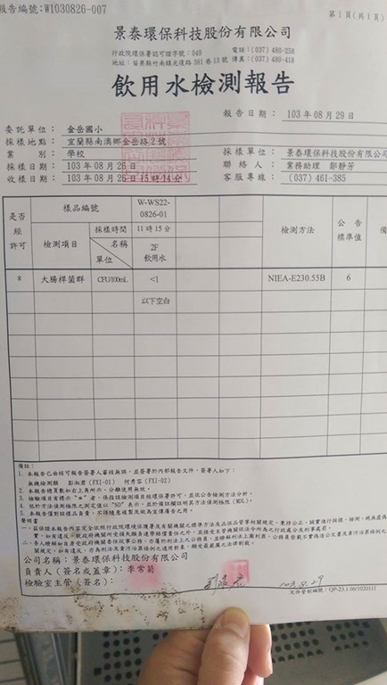 校園環保實務 2014 年 9 月 10 日2021 年 3 月 18 日 作者: 郭芷涵103主題:飲水機水質例行檢測主題:飲水機水質例行檢測地點:金岳國小時間:103.8.26說明:廠商進行例行性的飲水機水質檢測與保養工作