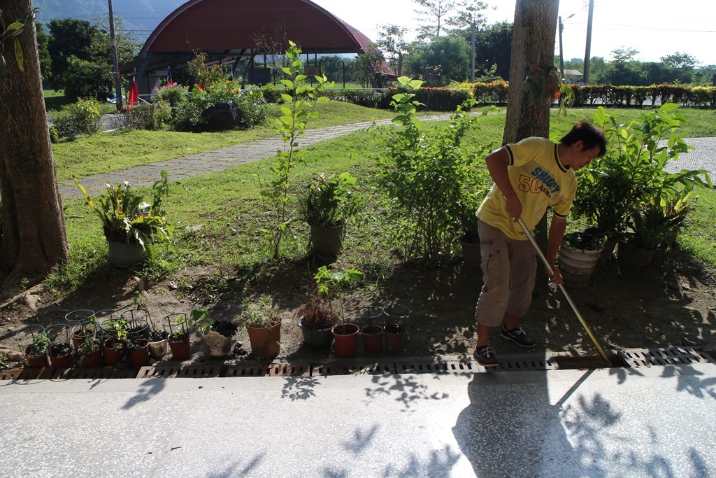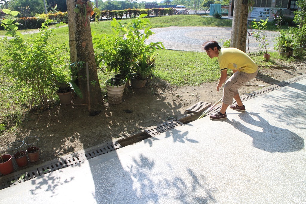 學校定期清理排水溝裡的汙泥,並將汙泥做為肥料使用。