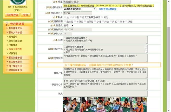 104年度宜蘭縣金岳國民小學辦理「環境教育」教學研習計畫